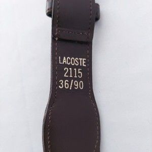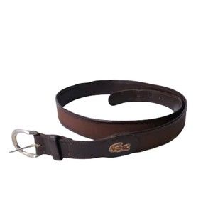 This is a brown leather belt that features the Lacoste logo. Belt is made of both fabric and leather. In good pre-owned condition with minimal signs of wear. No holes or stains present. Please view images for measurements.