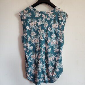 Ladies SZ L Loft By Ann Taylor Green Floral T-Shirt