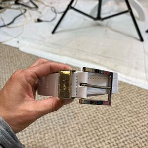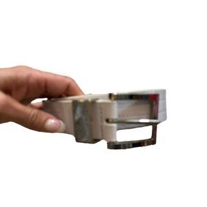 Ladies White Genuine Leather Belt with Silver Hardware Size XL