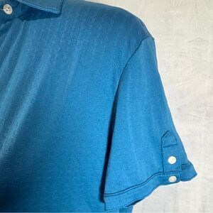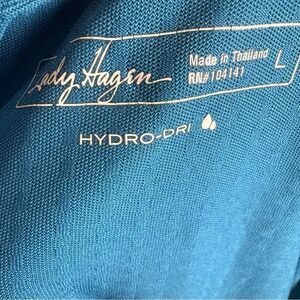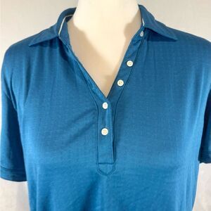 Lady Hagan blue textured and branded hydro dri gold polo size large
