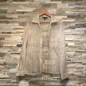 Lafayette 148 NY Silk Linen Sheer Blouse 10 | Neutral Stripe Button Shirt $400