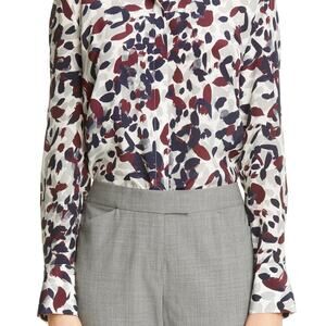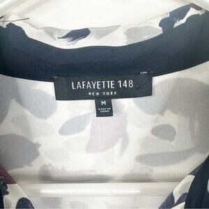 Lafayette 148 New York Size M Scottie Silk Printed Button Down Blouse Shirt