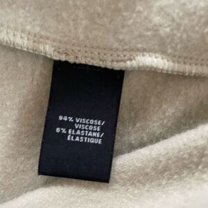 Lafayette 148, New York stretchy but weighted shift dress in a beige tape color with ivory satin insets at the neck. Perfect for a professional, vanilla girl coastal grandmother aesthetic. This is a crossover piece that can be dressed up or down. The interior is sueded and so soft. The stress is a comfort to wear. Laying flat measures 37.5” shoulder to hem and 18” armpit to armpit. Stretchy Viscose and elastane blend. $898 retail
