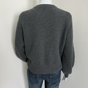 Lafayette 148 Women's Ribbed Cardigan Size S 100% Cashmere Gray Puff Sleeves