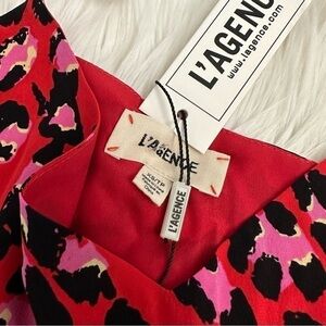L’AGENCE Jane, A slinky tank top in lustrous silk featuring a multi color leopard print. Style drapes luxuriously from sharp V-neck and slim adjustable spaghetti straps for a sexy, relaxed fit. 100% Silk.