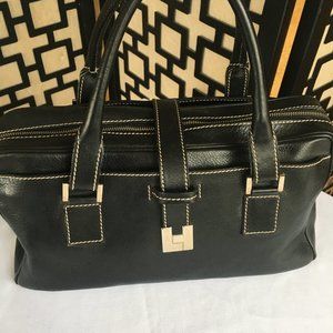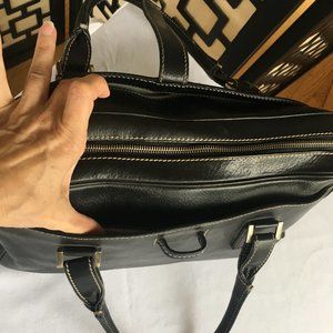 This bag has a one interior zip pocket, one interior phone pocket, one interior business card pocket, two additional inside small pockets and two outside pockets. It is complete with a zipper and flap closure. Normal wear and tear at feet and on bottom corners. Minor, does not show when holding bag. Inside does have wear and tear. always stored with tissue paper inside to hold shape. Price listed is Poshmark lowest recommended price suggestion. Other offers considered.