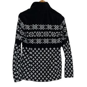 Lands End Fair Isle Fleece 1/4 Zip Pullover Top Black White Size Small Tall