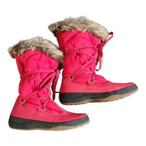 Lands End Faux Fur Trim Red Lace Up Winter Boots Women's 6.5B