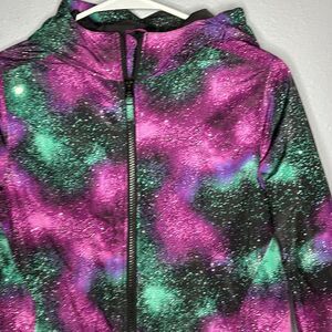 Lands End Insulated Purple Green Sky Space Scene Hooded Jackets Size M (10-12)