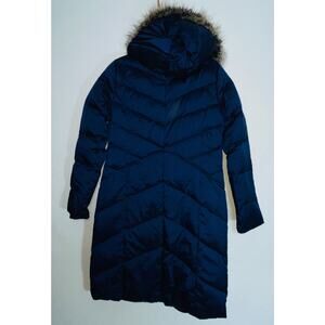 Lands' End Long Down Puffer Coat - Size S (6-8) - Vibrant Blue w/ Faux Fur Hood