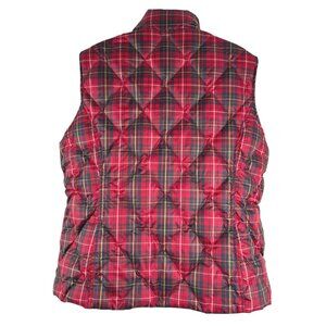 Lands' End Puffer Down Vest Womens Large Quilted Red Plaid Outdoor CJ-2146