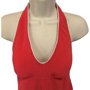Lands' End Women's Flutter Halter Tankini Top - Coral Size 8 Ribbed Knit Piping