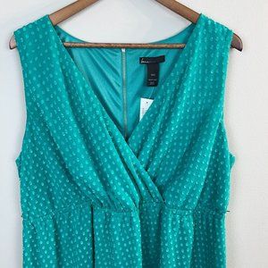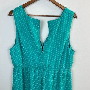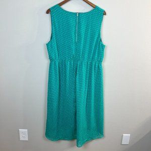 Lane Bryant Dress 18/20 Green V-Neck Sleeveless Polka Dot High Low Knee Length