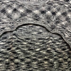 Crew neck with cutout. Short sleeves. Ribbed knit. No closure, pull-over style.