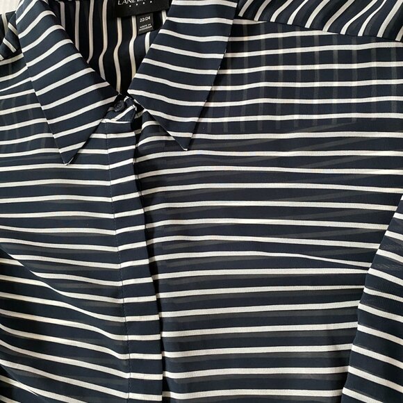 Lane Bryant Womens Navy/White Striped Button-Up Tunic Collared Size 22/24 Sheer