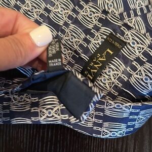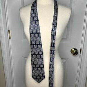 Lanvin Paris Silk Patterned Tie Navy Blue Silver
