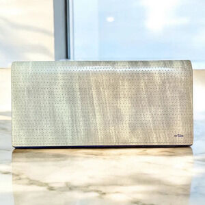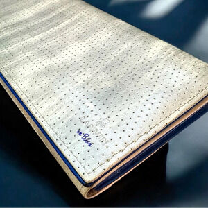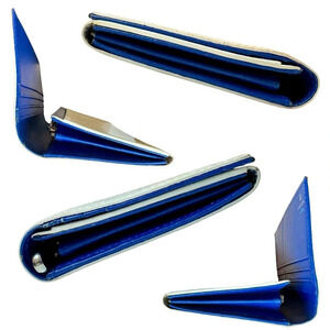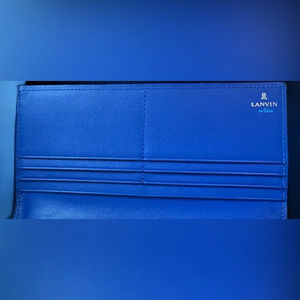 High-end luxury and modern fashion have been effectively blended together by *Lanvin en Bleu*—the younger, more approachable branch of the renowned French fashion brand Lanvin. And this wallet is exactly that. The gray and white watercolor patent leather; perforated texture; smooth royal blue leather interior; and sleek body design definitely embody the vibrant and fashion forward spirit of *Lanvin en Bleu*!
