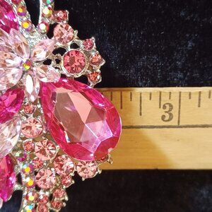 There are Large Brilliant Pink rhinestones, and smaller Lighter pink rhinestones, all set in silver tone.