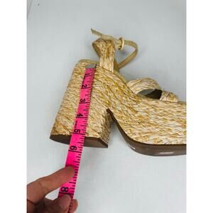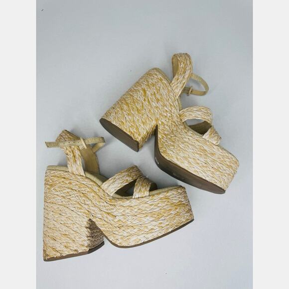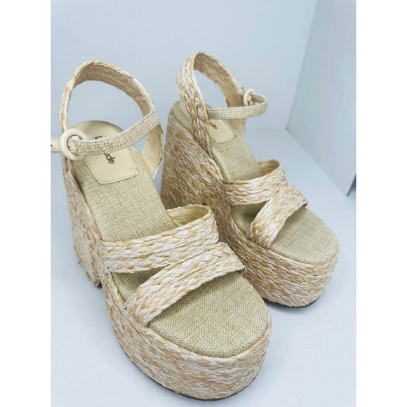 Larroudé Neutral tan Carmen 145MM Raffia Platform Sandals size 9