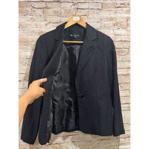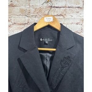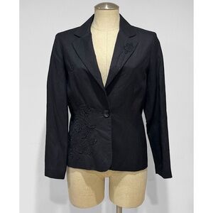 Larry Levine Suits Women's Black Embroidered Floral Linen Blazer Size 8P