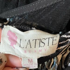 L'atiste Rare Galaxy Maxi Black Dress Sheer Embroidered Size S