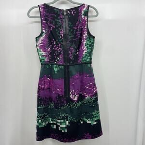 Laundry by Shelli Segal Size 2 Sheath Dress 100% SILK Multicolor Purple Pockets