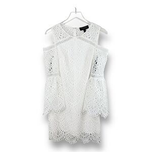 Laundry by Shelli Segal White Eyelet Cold Shoulder Dress w/Bell Sleeves Sz 2