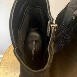 Step into sophisticated elegance with these Laura Biagiotti ankle booties. Featuring a sleek black suede upper, contrast textured side panels, and chic silver-tone buckle detailing with a tassel accent, these boots offer a luxurious designer touch.