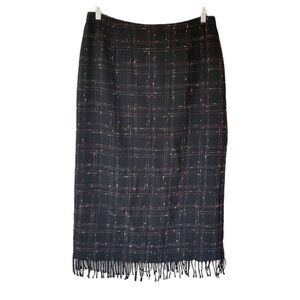 Laura Scott Wool Blend Plaid Fringe Midi Maxi Pencil Skirt Sz 14