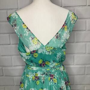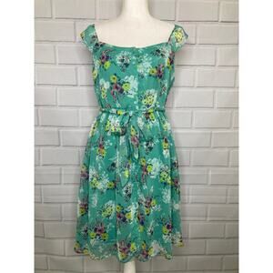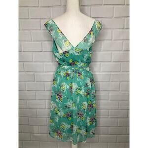 Lauren Conrad Paola Posey Green Floral Chiffon Spring/Summer Dress Size 14