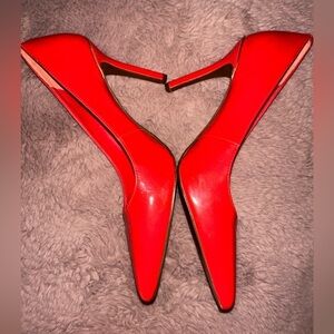 Bright red pointed toe stiletto heels