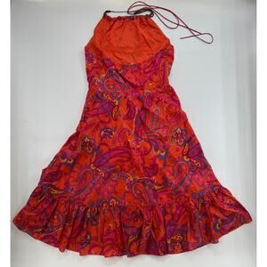 Lauren Ralph Lauren Silk Halter Dress Size 10 Red Paisley Boho Beaded Neckline