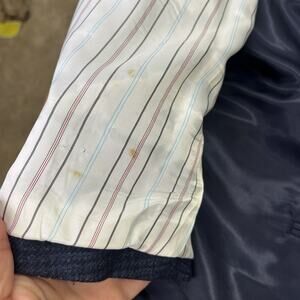 Very good pre-owned condition. There are a few light stains on the lining of the left sleeve that does not go all the way through the jacket.