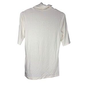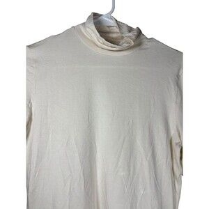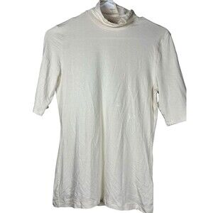 Lauren Ralph Lauren Women’s Mock Neck Top Ivory Cream M Elbow Sleeve Minimalist