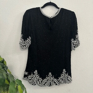 Laurence Cazar party top silk stunning night elegant classy look Sz L