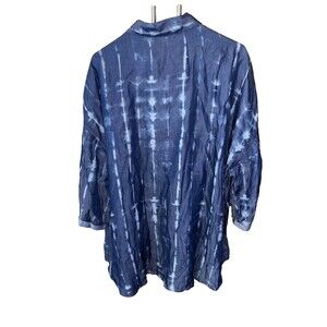 Laurie felt women button up top blouse blue geometric roll cuff 3/4 sleeve lyocell tencel collared size 2X pit to pit 28 length 32 machine wash