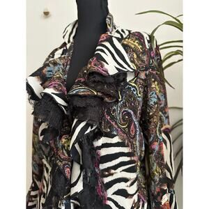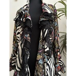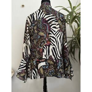 Le Caviar zebra paisley print ruffle lace tie front flare sleeve top Small
