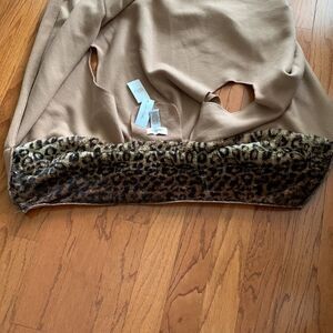 Le Moda NWT Open Front vest with faux fur animal print collar XL-XXL