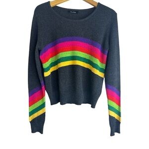 Lea & Viola Dark Heather Grey Rainbow Stripe Knit Sweater Size Small