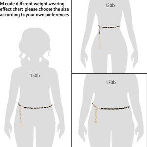 Size There are three different sizes for the abdomen body chain. S: 90cm/35.4in, suitable for people under 130 lb. M: 110cm/43.3in, suitable for people under 150 lb. L: 130cm/51.1in, suitable for people under 170 lb. You can adjust the length by lengthening the chain, which fits all sizes of women and girls