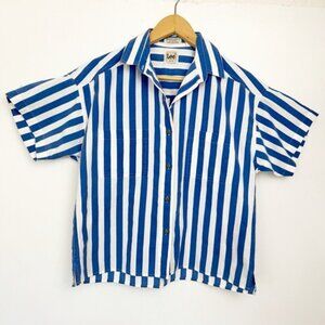 Lee Blue & White Striped Resort Shirt Relaxed boxy fit size 9-10