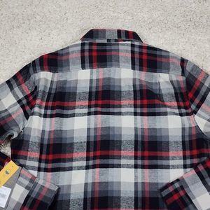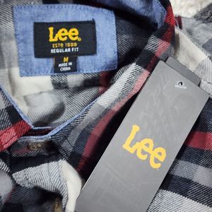 This shirt is brand new with tags. Elevate your wardrobe with this stylish Lee flannel shirt. The gray plaid pattern, collared neckline, and button closure make it suitable for any occasion, from workwear to party/cocktail events. This button-up shirt features long sleeves, pockets, and is made of a breathable polyester and cotton blend material, ensuring comfort all day long. The flannel fabric type, spread collar style, and accents like buttons and Lee's logo, give it a designer and preppy feel. This regular fit shirt is machine washable for easy care, making it ideal for travel. Add this classic and versatile shirt to your collection for a timeless look.