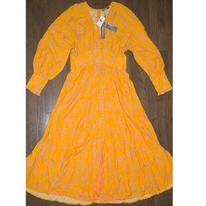 Lela Rose Butterfly-Print Georgette V-Neck Dress