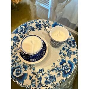 Candle in a spode blue and white teacup Vintage Decor features intricate detailing and a classic design, reflecting light beautifully and creating a cozy ambiance. Ideal for creating a relaxing atmosphere during evenings or adding a decorative touch to your living space, bedroom, or even as a centerpiece for special occasions.