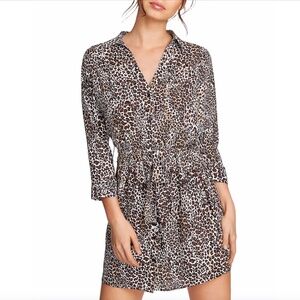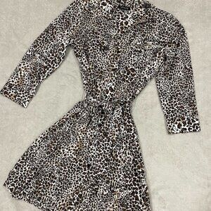 Leopard Cheetah Belted Shirt Dress Size XS