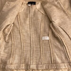 Les Copains Blue Ladies Tan Tweed Chanel Style Jacket. Made in Italy.