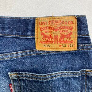 Levis 505 Jeans Mens 33 Blue Denim Straight Leg Medium Washed