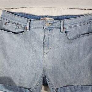 This is a pair of Levi's Signature Mid Rise jean shorts in EUC. They have 5 pockets and a rolled hem. Women's Size 12 or 31 Waist.