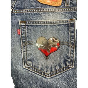 Levi's 517 Blue Denim Heart Patch Boot Cut Shorts