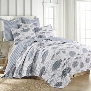 Levtex Blue and Gray Fish Quilt Set Twin NEW